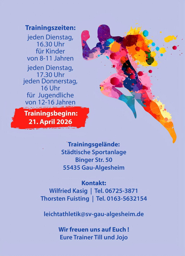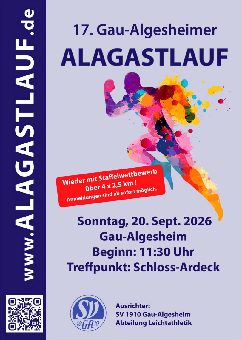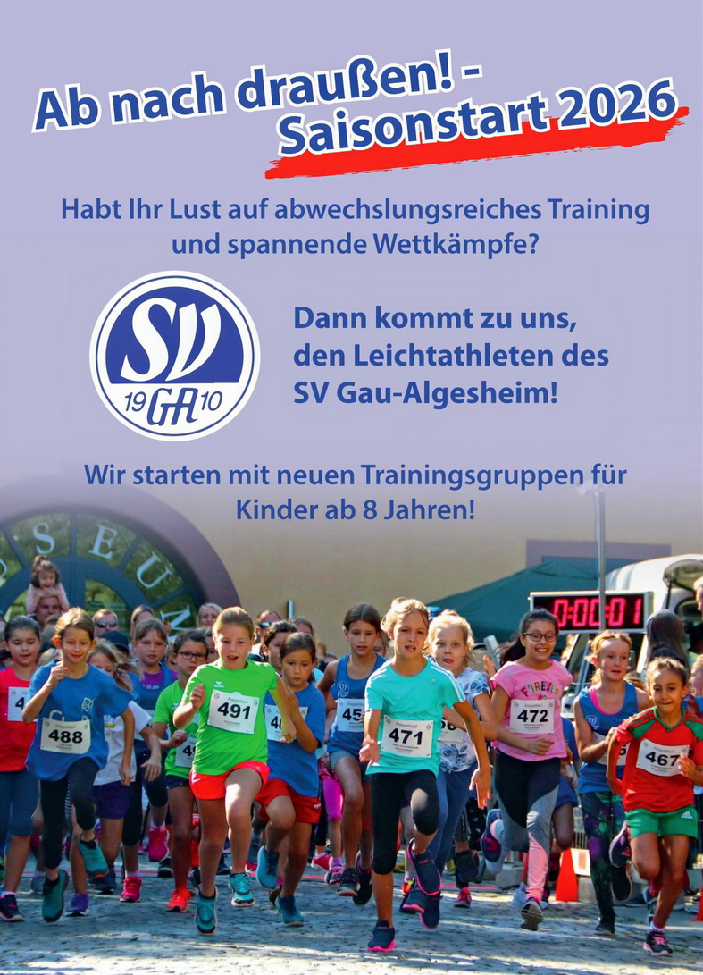 Schön, dass Sie die Website der Gau-Algesheimer Leichtathletik-Abteilung besuchen.